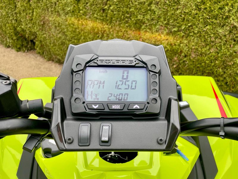 • Instrumente: 4“ LCD Fahrerinformtionszentrum mit Bluetooth, Digital km-Zähler, Drehzahlanzeiger, zwei tages-km-zähler, Fahrzeitanzeige, Uhr, Service Indicator, Diagnostic Indicator, Ganganzeige, Tankanzeige, AWD Anzeige, Temperatur/Batterie-Warnanzeige, 12-V Steckdose
