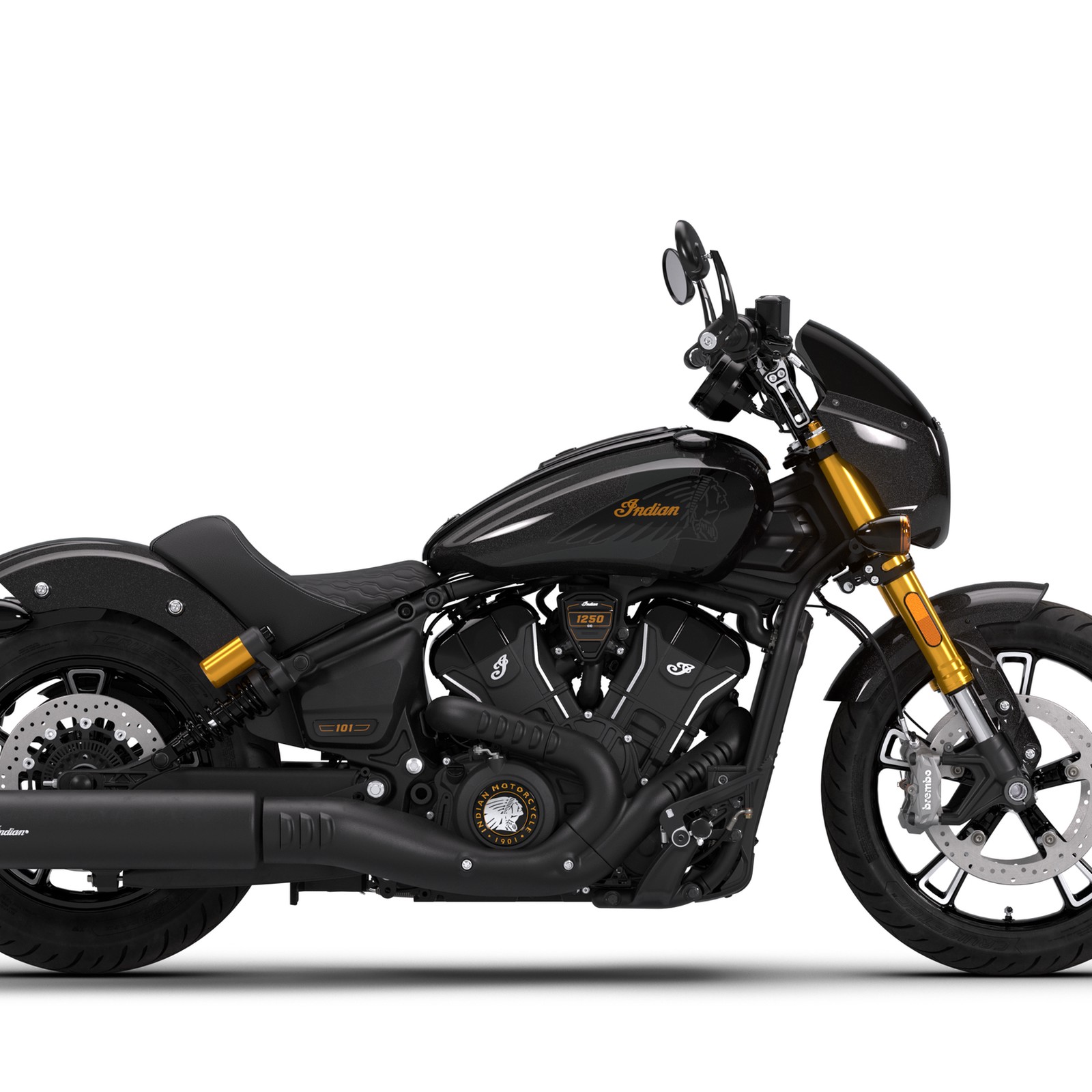Mit einstellbaren Piggyback-Federbeinen hinten, einer einstellbaren Umkehrgabel vorne und Brembo-Doppelscheibenbremsen ist die 101 Scout vollgepackt mit Premium-Komponenten.